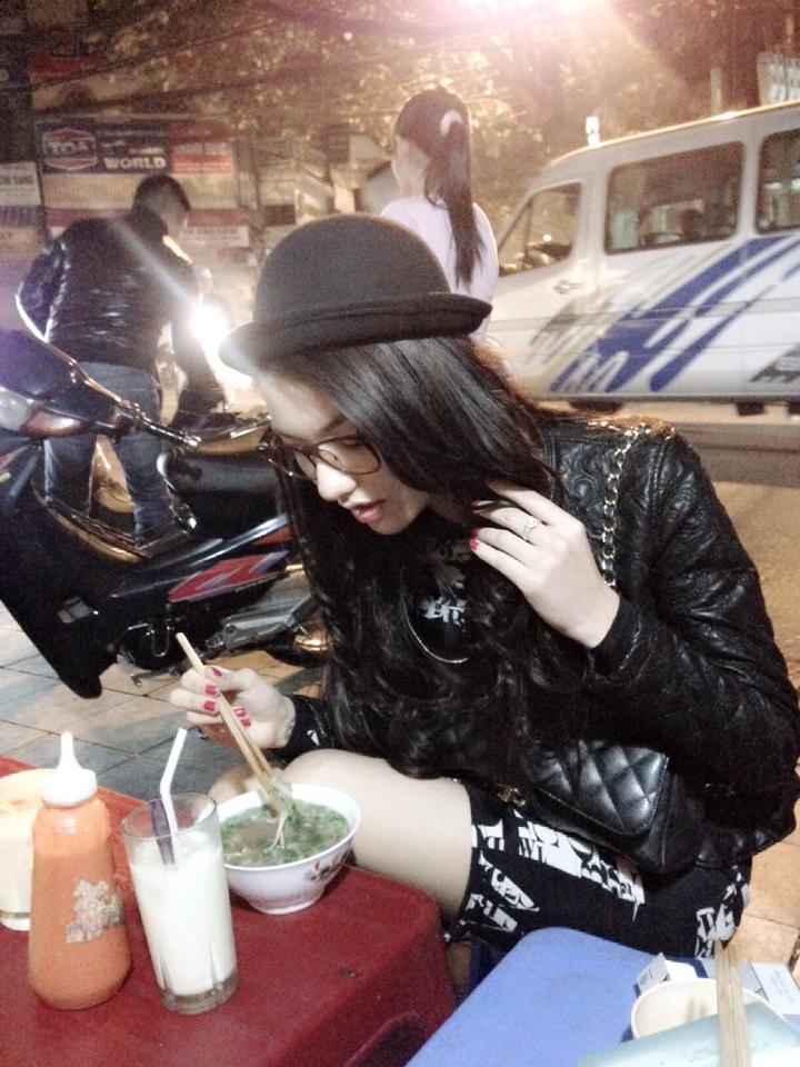 | Hình ảnh lê la hàng quán vỉa hè gần đây của Lý Nhã Kỳ. |