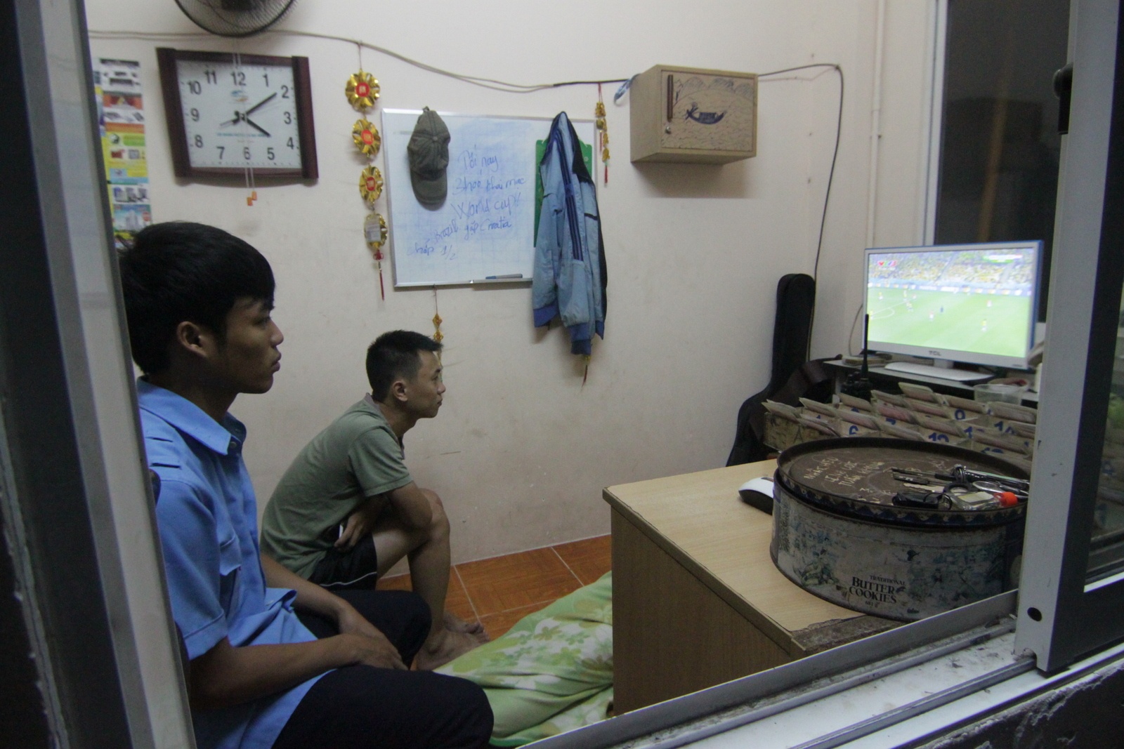 | Tại KTX ĐH Quốc gia TP.HCM, ban quản lý cũng đặt tivi ở một vài dãy nhà nhằm đáp ứng nhu cầu xem World Cup, |
