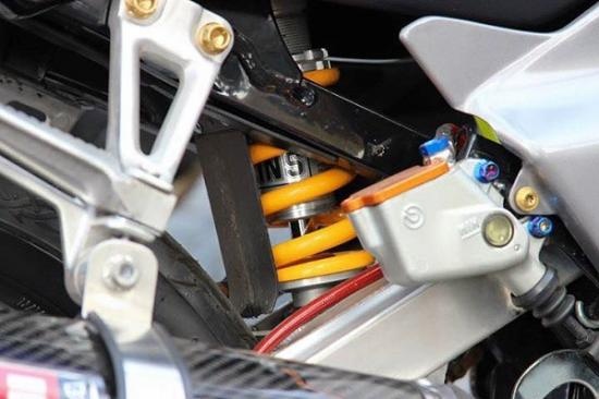| Thụt sau monoshock cũng độ lên hàng hiệu Ohlins. |