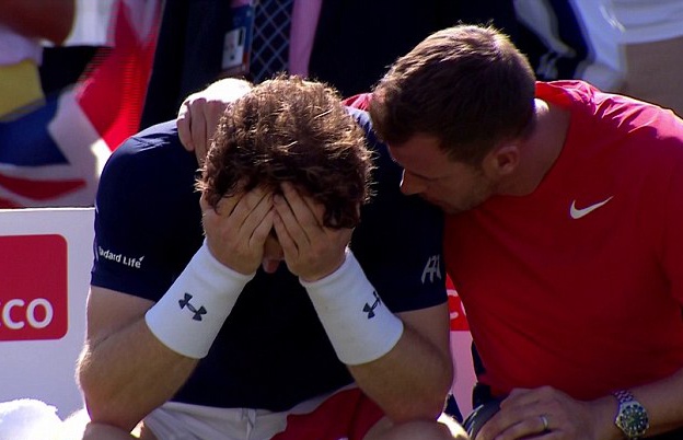 | Trước đó ở trận đánh đôi, Murray từng dính chấn thương ở đùi phải. |