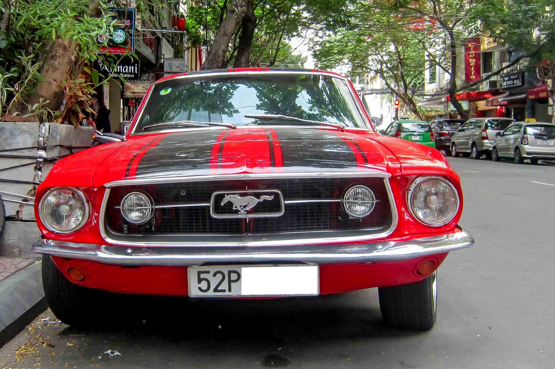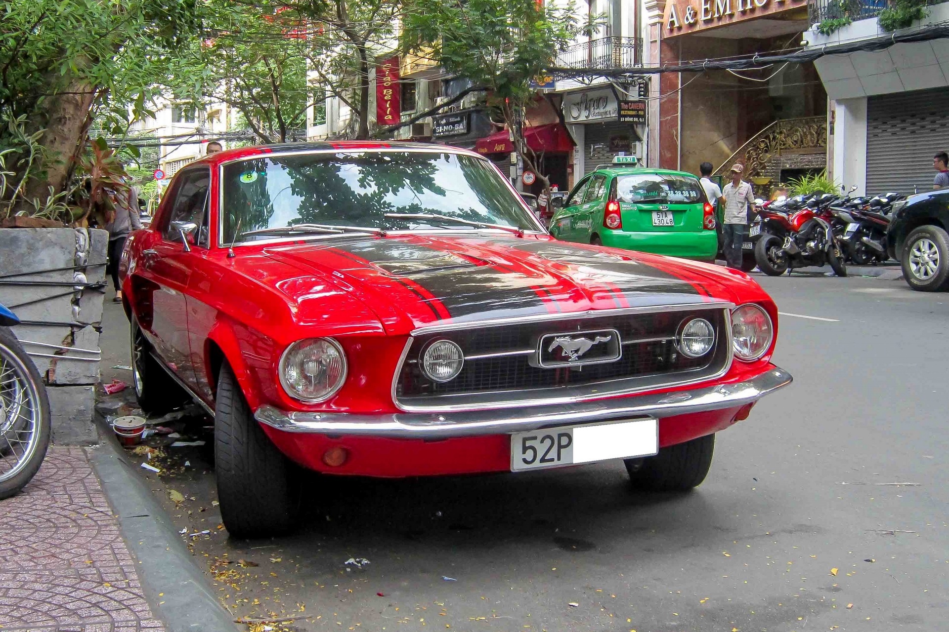Ford Mustang đời 1967 ấn tượng trong màu sơn đỏ cùng nhiều chi tiết mạ chrome sáng bóng vừa được bắt gặp tại TP HCM.