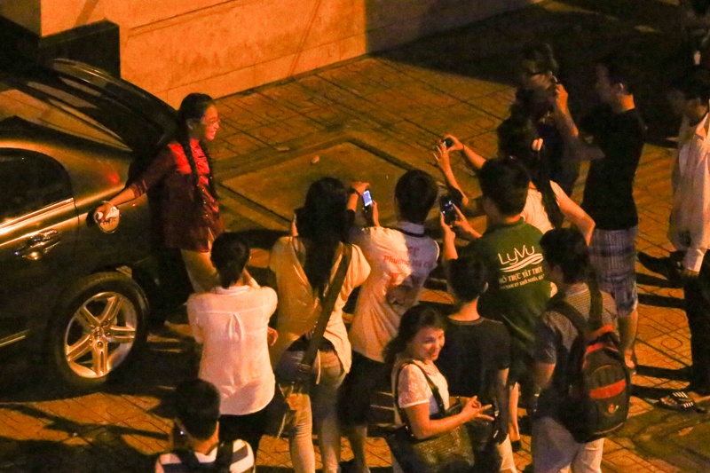 "Chị Bảy" dạn dĩ hơn trước khá nhiều nên cách tạo dáng khi thấy mọi người chụp hình mình cũng tự nhiên và đa dạng hơn chứ không chỉ giơ hai ngón tay hình chữ V như trước. Mẹ Phương Mỹ Chi cũng có mặt trong đám đông để bảo đảm an toàn cho con gái.