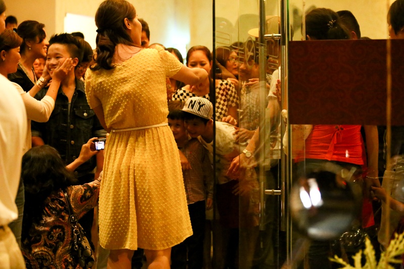 Nhiều người hâm mộ còn vây quanh để xin chữ ký và tặng quà cho cô nhóc.