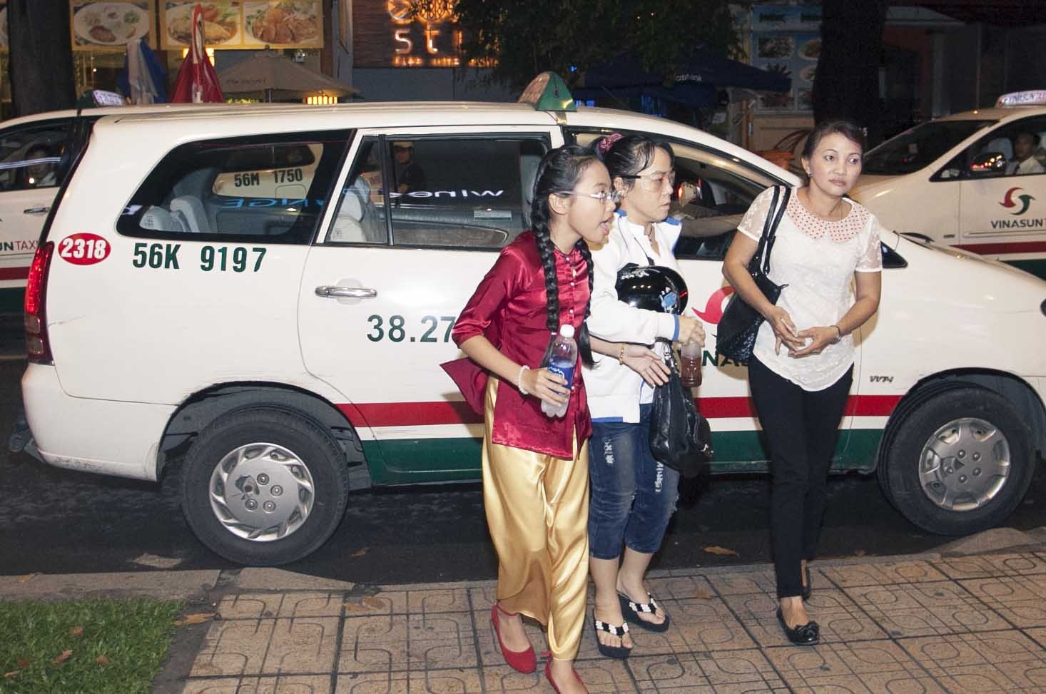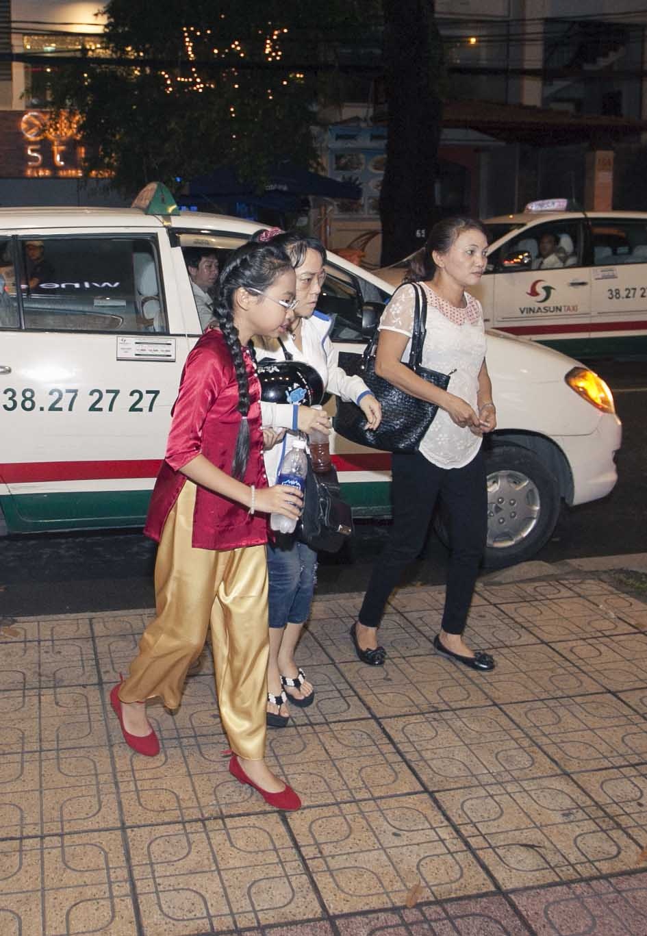 Cô Út Quế Như của Phương Mỹ Chi cũng tháp tùng cô nhóc tới đây. "Chị Bảy" diện áo bà ba ton-sur-ton với đôi giày màu đỏ và tết tóc hai bên rất nữ tính. Đây có lẽ là bộ trang phục khiến cô nhóc tự tin và thoải mái nhất khi đứng trên sân khấu.
