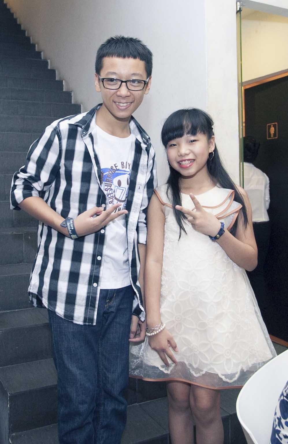 Phương Mỹ Chi xì tin bên Quang Anh. Hai nhóc tỳ vẫn rất thân thiện và thoải mái với nhau bất chấp nhiều ý kiến trái chiều về kết quả trong đêm chung kết.