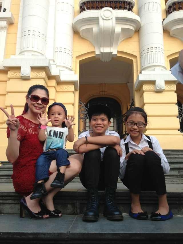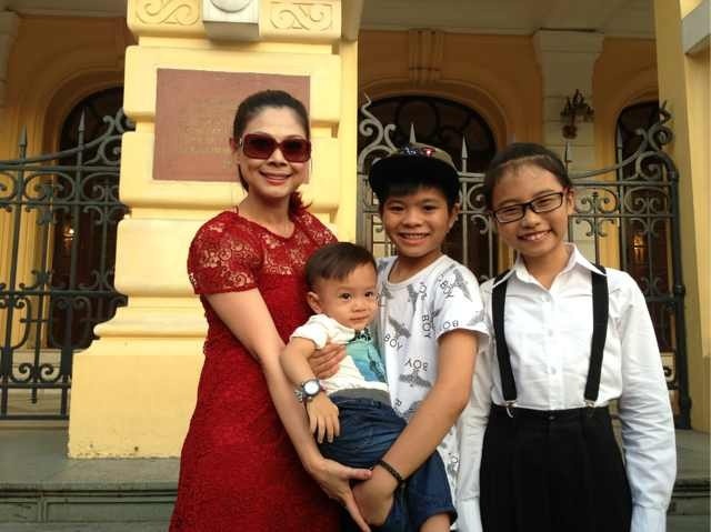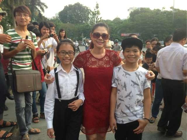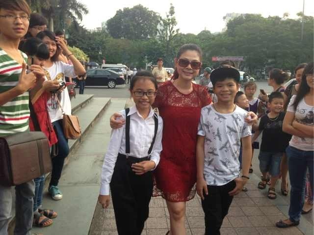 | Ca sĩ Thanh Thảo là người đi cùng hai em. |