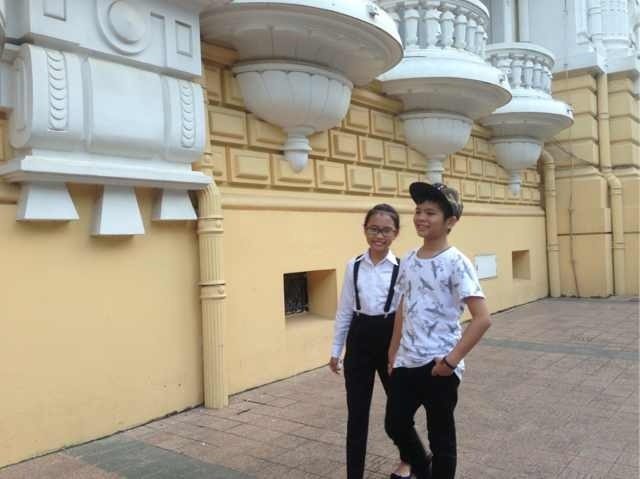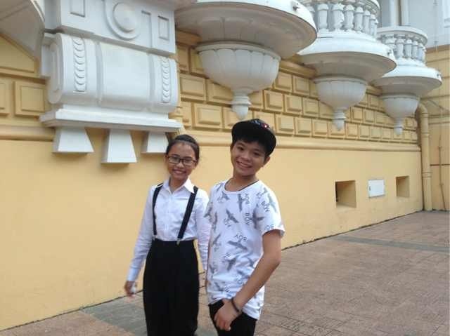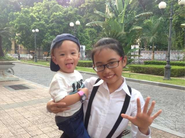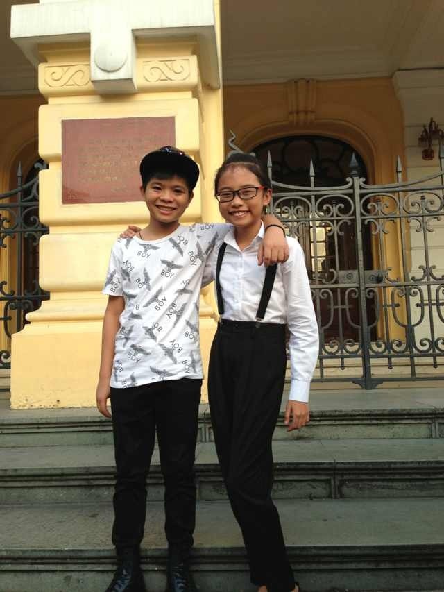 | Mỹ Chi và Quang Anh chọn trang phục ton-sur-ton đáng yêu khi dạo phố phường Hà Nội. |