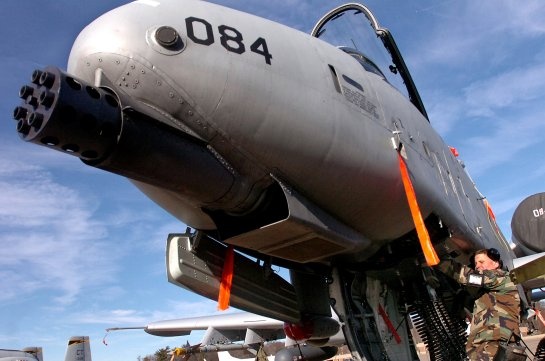 Cường kích phản lực A-10 còn có biệt danh là “lợn lòi”. Nó ra đời trong những năm 1970 để hỗ trợ lực lượng mặt đất ở châu Âu chống lại xe tăng và xe bọc thé của Liên Xô. A-10 có khả năng ném bom và bắn tên lửa nhưng vũ khí chống tăng hiệu quả nhất của nó là khẩu súng máy 7 nòng Gatling cỡ nòng 30 mm. Với tốc độ bắn đạt 4.000 viên/phút, nó nhanh chóng vô hiệu hóa một chiếc xe tăng dưới mặt đất. |