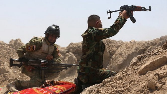 | Binh sĩ Iraq bắn về phía IS ở quận Garma, tỉnh Anbar hôm 19/5. Ảnh: AFP |