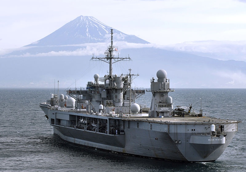 Tàu chỉ huy USS Blue Ridge của Mỹ đã cập cảng Busan từ hôm 12/8 để chuẩn bị tham gia tập trận. Ảnh: commons.wikimedia.org |