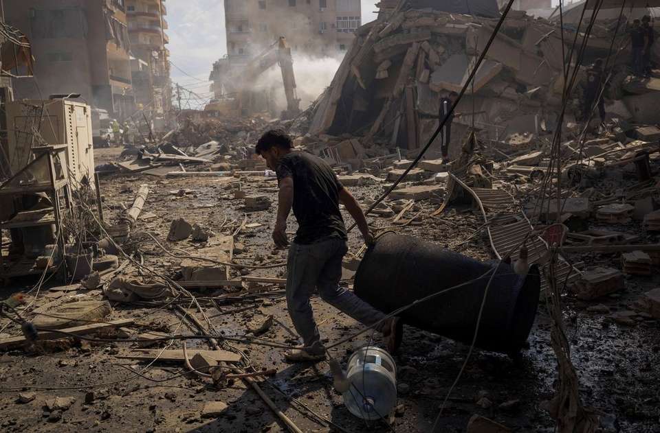 Một người đàn ông tại địa điểm trúng đòn tập kích của Israel ở Tyre, Lebanon vào ngày 8/4, trong bối cảnh xung đột giữa Iran và Mỹ - Israel. Ảnh: Reuters. |