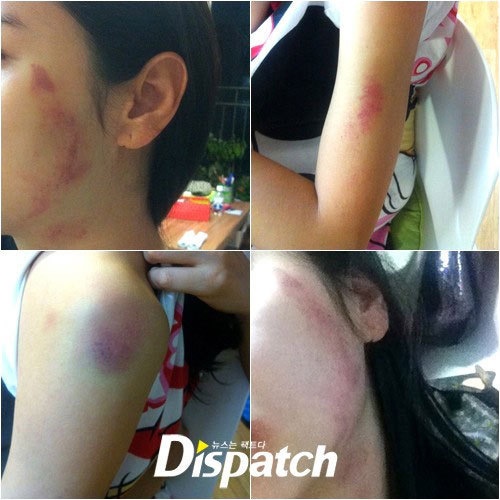 | Hình ảnh vợ cũ của Lee Sung Wook và những vết bầm tím do anh gây ra. |