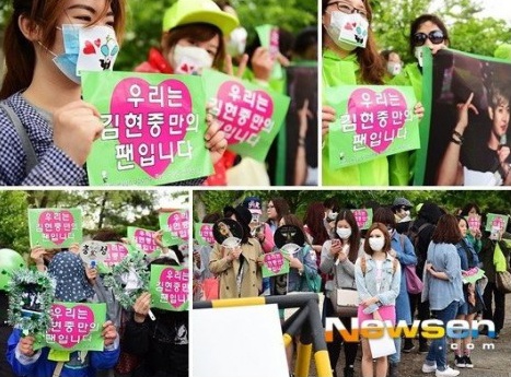 | Dù hình ảnh bị ảnh hưởng nghiêm trọng sau khi cuộc sống riêng tư bị công khai nhưng Kim Hyun Joong không hề cô đơn. Vẫn có rất nhiều fan đến trước doanh trại quân đội nơi Kim Hyun Joong nhập ngũ để thể hiện tình yêu và sự ủng hộ với nam diễn viên 29 tuổi. |