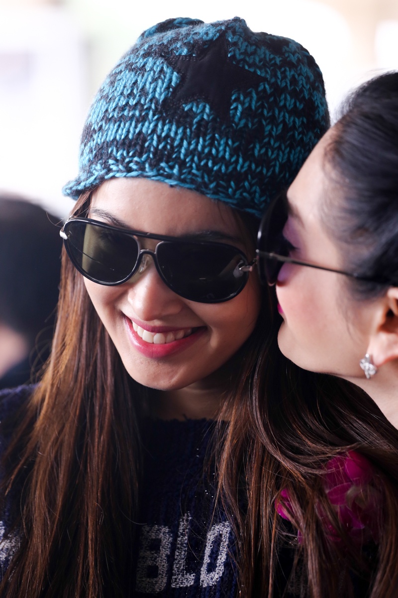 | Ngay khi vừa xuất hiện Nong Poy đã trở thành trung tâm của sự chú ý dù cô ăn mặc khán giả dị với áo len, váy thun và đội mũ len. |