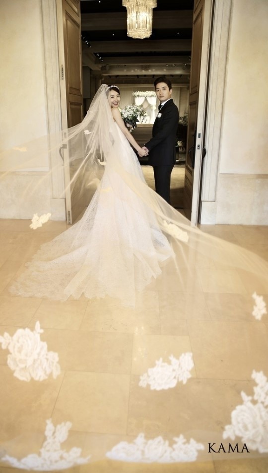 | Cô dâu So Yi Hyun và chú rể In Kyo Jin rạng rỡ trong bộ ảnh cưới. |