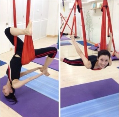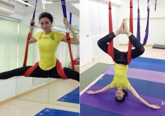 | Lý Gia Hân với yoga trên không. Ở tuổi 43, mỹ nhân Hong Kong vẫn giữ được cơ thể dẻo dai và nhan sắc đáng ghen tỵ là nhờ vào thường xuyên tập luyện môn thể thao đặc biệt này. |