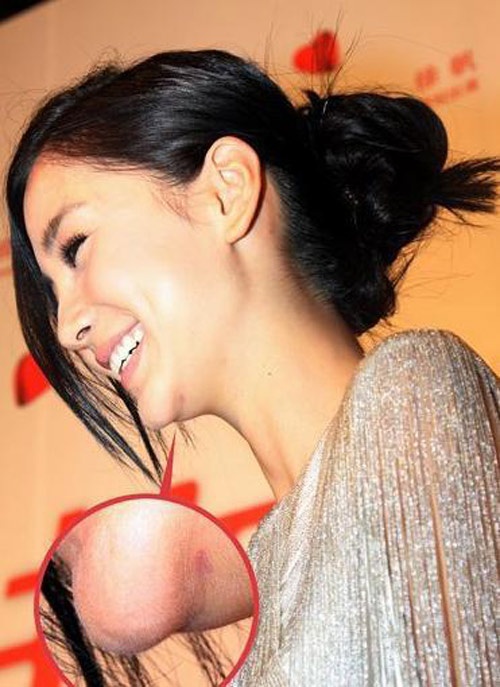 | Luôn xuất hiện trong những trang phục hàng hiệu và mái tóc dài óng ả nhưng dường như Phạm Băng Băng “quên” không chăm sóc vùng nách với nhiều vết thâm. |