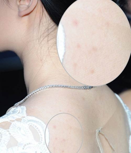 | Lưu Diệc Phi diện chiếc váy ren màu hồng pastel đáng yêu sẽ trở nên xinh đẹp và hoàn hảo hơn nếu không lộ vô vàn vết mẩn mụn trên khắp cơ thể. |