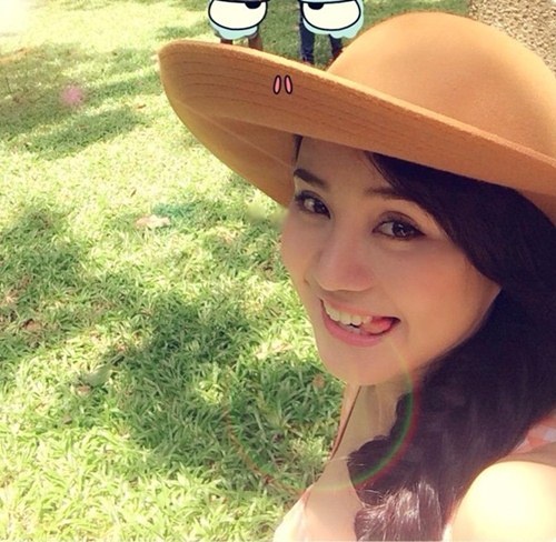 | Ở Mỹ, cô liên tục đăng tải hình ảnh và chia sẻ mình đang lên cân từng ngày. Cô từng viết: "Em cũng mới ú thêm chút xí à, có nhiu đâu, bác sĩ khen bé khỏe bé ngoan”. |