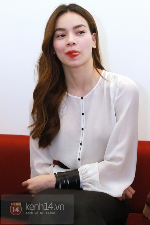 | Siêu mẫu Hoàng Yến lè lười làm mặt xấu xấu trước ống kính. |