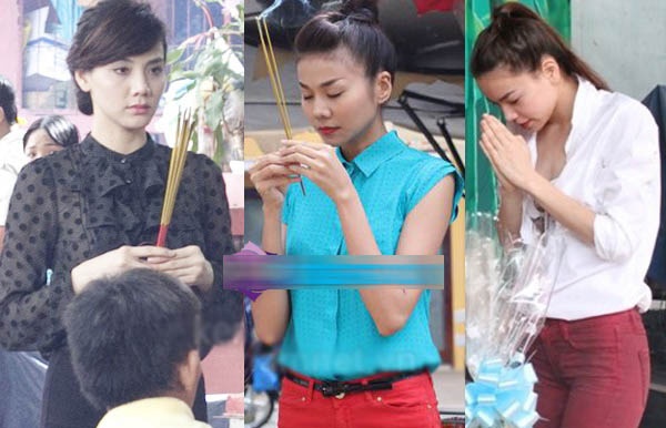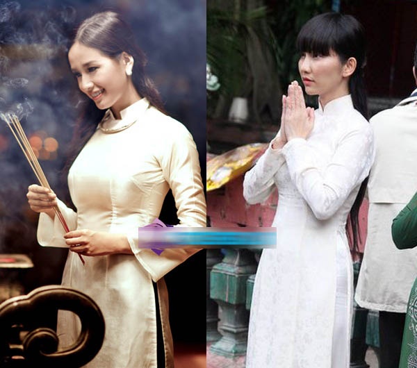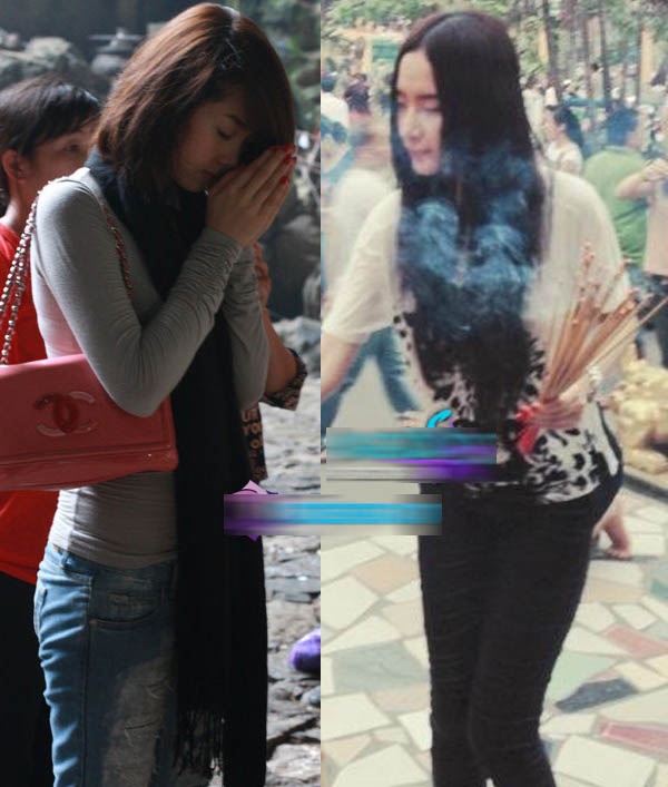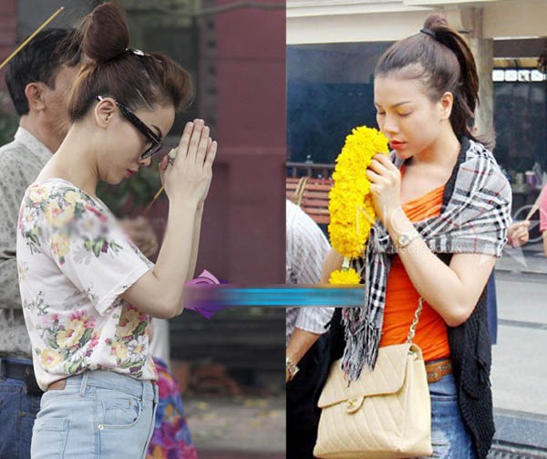 | Thanh Ngọc và Trương Quỳnh Anh duyên dáng khi lên chùa. |
