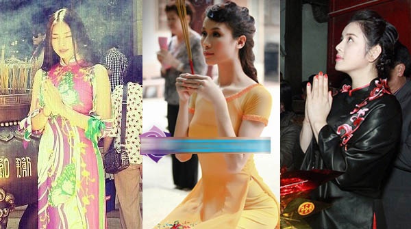 | Ngô Thanh Vân, Thái Hà, Lý Nhã Kỳ đẹp nền nã với áo dài truyền thống. |
