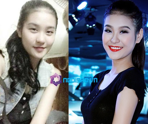 | Bảo Anh khác một trời, một vực giữa trước và sau trang điểm. |