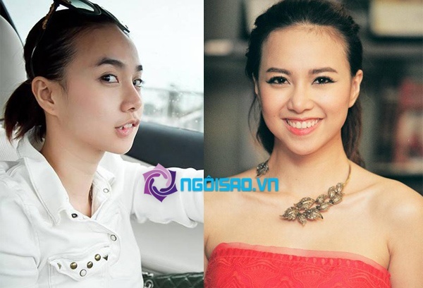 | Khuôn mặt mộc của Trương Quỳnh Anh khá sạm và sần, tuy nhiên, sau khi trang điểm cô đã khác hoàn toàn. |