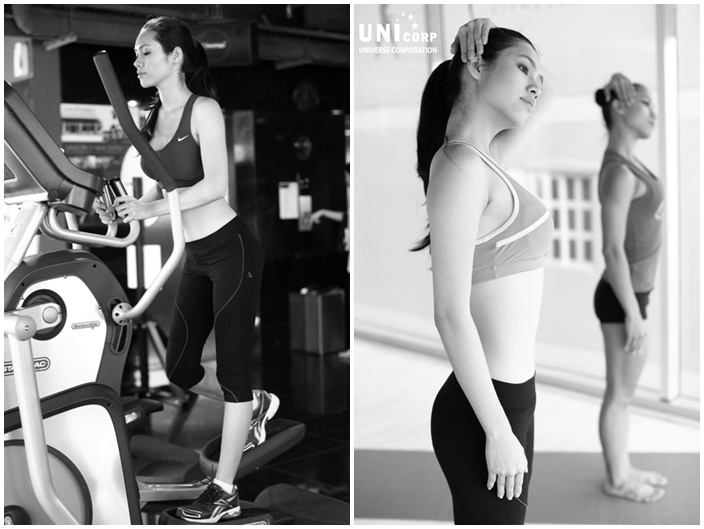 Sở hữu một ngoại hình hoàn hảo, Ngọc Quyên khiến người hâm mộ dõi mắt theo những khung hình khi cô đang luyện tập cho cuộc thi Bước nhảy hoàn vũ 2012. Trang phục thể thao rất đời thường để lộ vòng eo con kiến nhỏ nhắn và săn chắc.
