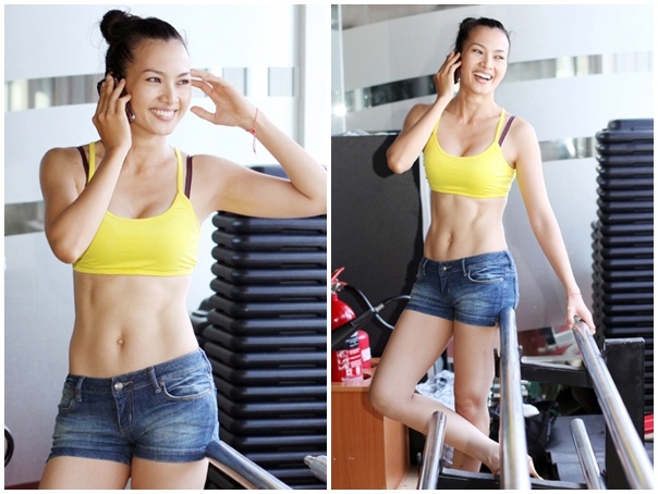 Mỹ nhân Việt khoe eo con kiến trong phòng tập