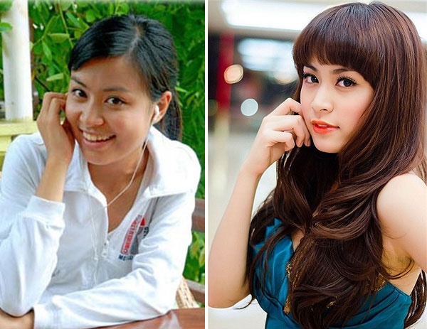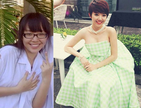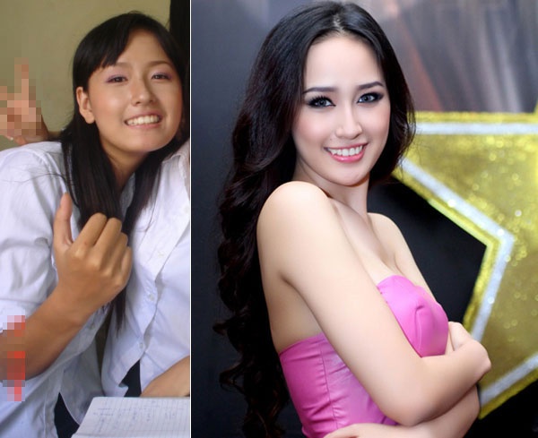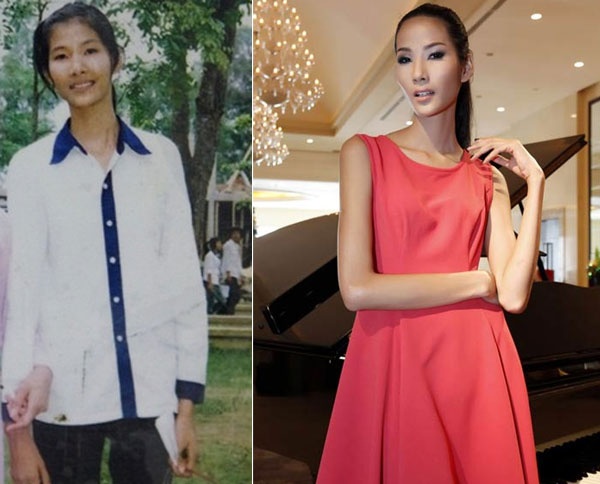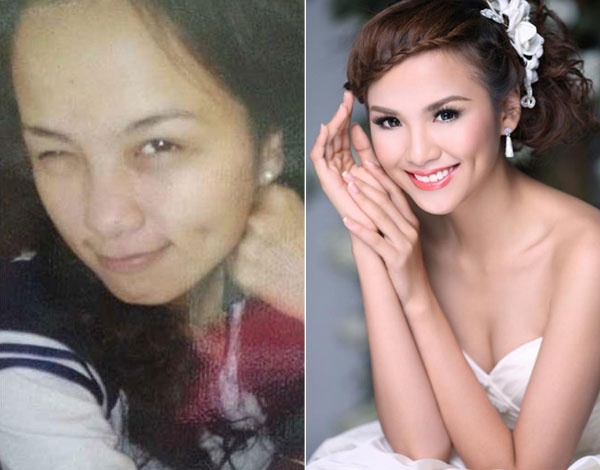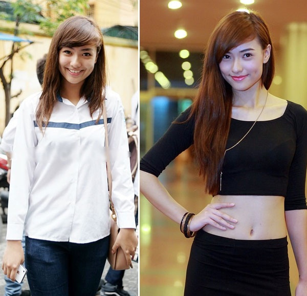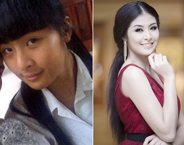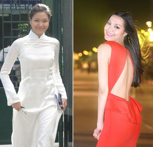 | Hoa hậu Ngọc Hân thay đổi rất nhiều so với thời diện áo trắng tới trường. Làn da cô giờ trắng mịn màng không đen như trước đây. |