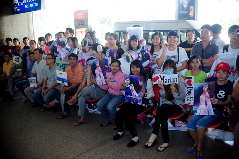 | Marian ăn mặc giản dị và trang điểm nhẹ nhàng. Cô luôn cười rạng rỡ chào đón fan Việt. |