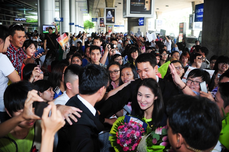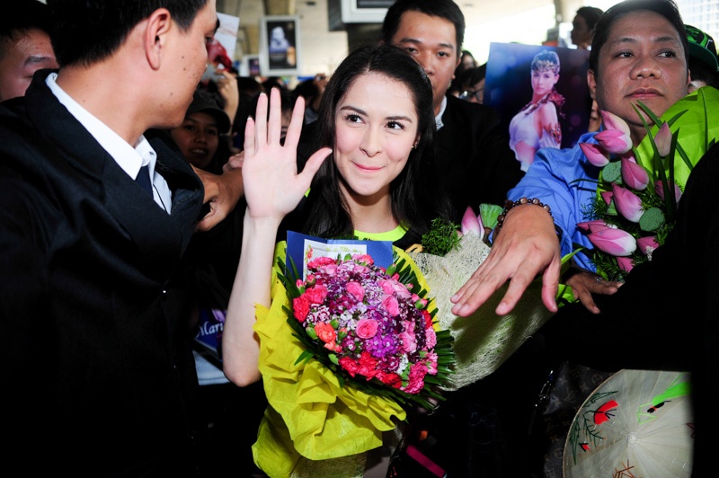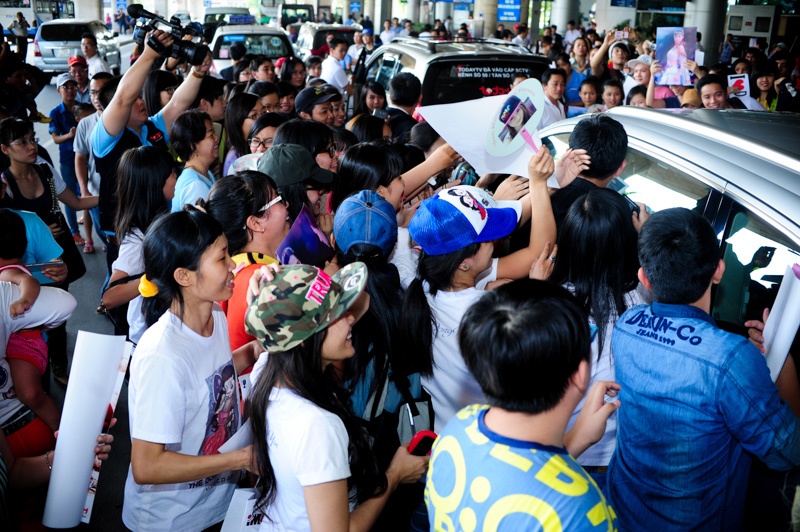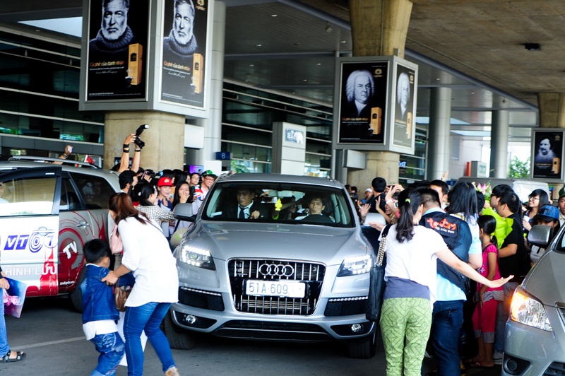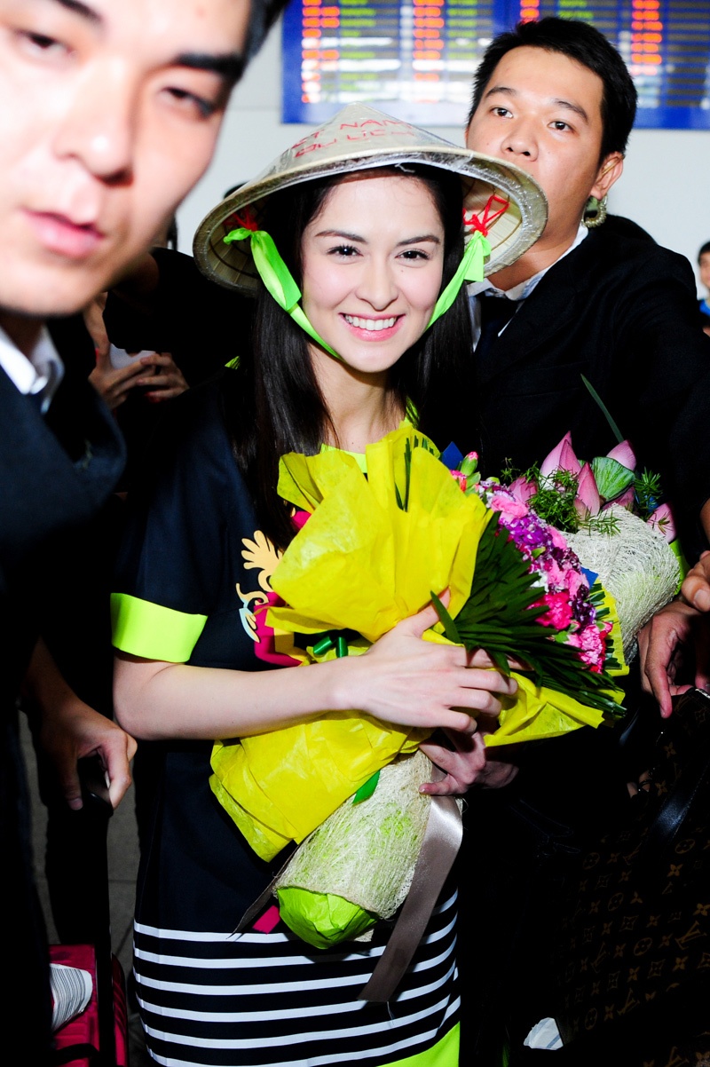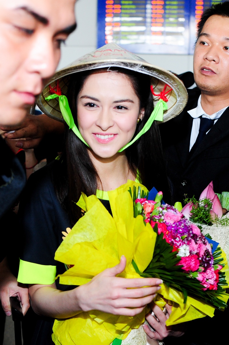 | Nữ diễn viên xinh đẹp rất bất ngờ trước tình cảm của khán giả Việt dành cho mình. Đáp lại tình cảm đó, cô tỏ ra thân thiện, chào fan cũng như chụp hình. Tuy nhiên, trước sự cuồng nhiệt của người hâm mộ, cô được đội vệ sĩ bảo vệ chặt chẽ ngay từ khi bước xuống máy bay. |