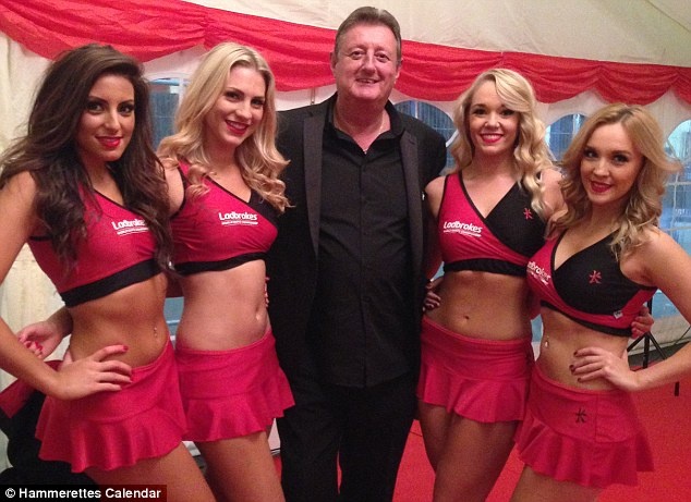 | Dàn người đẹp West Ham chụp cùng cựu vô địch phi tiêu thế giới Eric Bristow. |