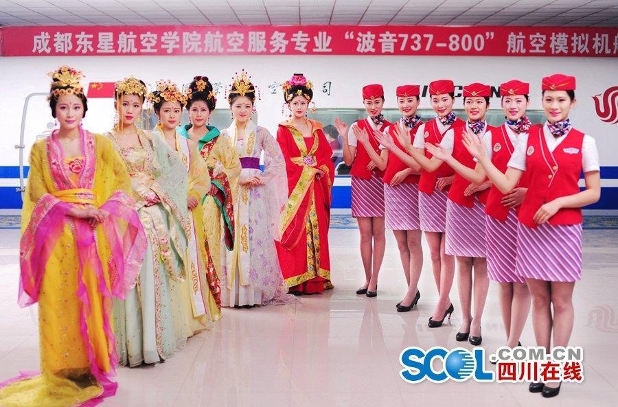 | Nhóm thí sinh chụp ảnh lưu niệm gần mô hình máy bay. Trào lưu mô phỏng tạo hình của các nhân vật trong phim đang trở nên phổ biến trong giới trẻ Trung Quốc. |