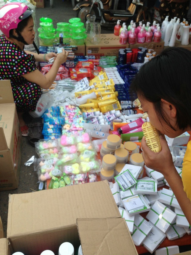 Ngoài bán hàng lưu động trên đường, một điểm quen thuộc để bất cứ phụ nữ nào yêu thích mỹ phẩm giá rẻ đều dễ dàng tìm mua, đó là... chợ. Chợ Bình Tây (quận 6) được xem là đầu mối, chuyên cung cấp mỹ phẩm với giá sỉ siêu rẻ.