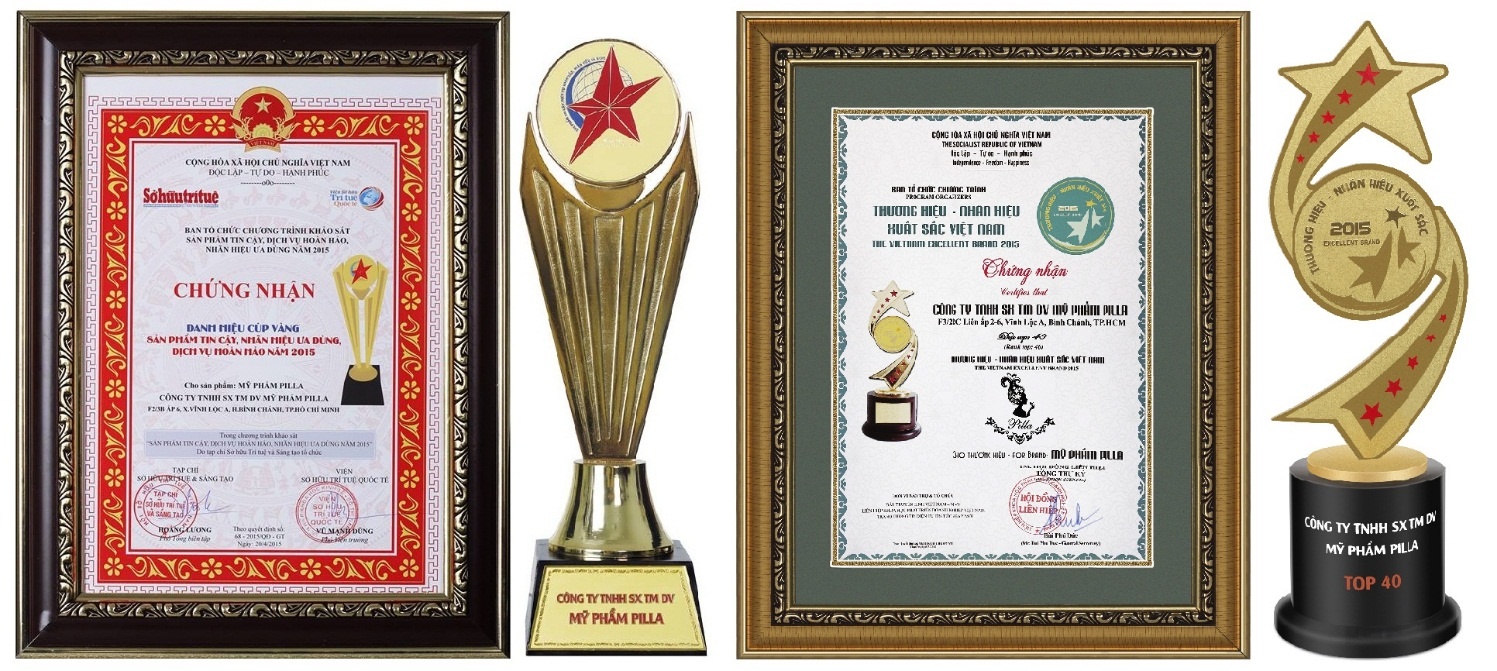 Công ty Mỹ phẩm Pilla đã đạt được nhiều sự tin yêu của người tiêu dùng với kết quả là hàng loạt giải thưởng đến với công ty trong thời gian gần đây Giải thưởng thương hiệu xuất sắc Việt Nam, Giải sản phẩm tin cậy quốc gia, Dịch vụ hoàn hảo do người tiêu dùng bình chọn và mới đây nhất là Nhãn hiệu được ưa dùng 2015.
