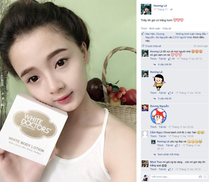 Thương hiệu White Doctors đang ngày một lớn mạnh, được chị em phụ nữ trong và ngoài nước tin dùng. White Doctors luôn giữ uy tín và cam kết hoàn lại tiền hoặc đổi lại sản phẩm nếu khách hàng không hài lòng về sản phẩm.