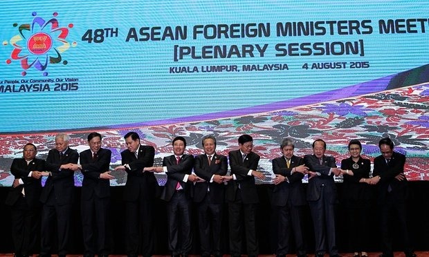 | Phó thủ tướng, Bộ trưởng Ngoại giao Phạm Bình Minh (thứ 5 từ trái qua) dự hội nghị Bộ trưởng Ngoại giao ASEAN lần thứ 48. Ảnh: The Guardian |