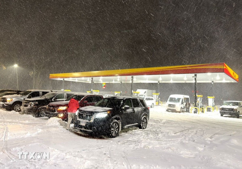Tuyết phủ kín một trạm xăng tại bang Louisiana, trong đợt bão tuyết đầu tiên của mùa Đông. Ảnh: Ngọc Quang/TTXVN. |