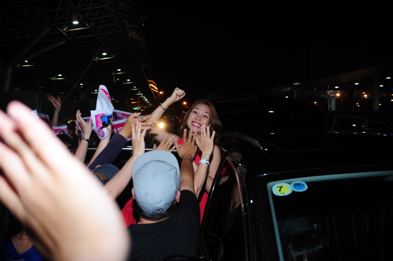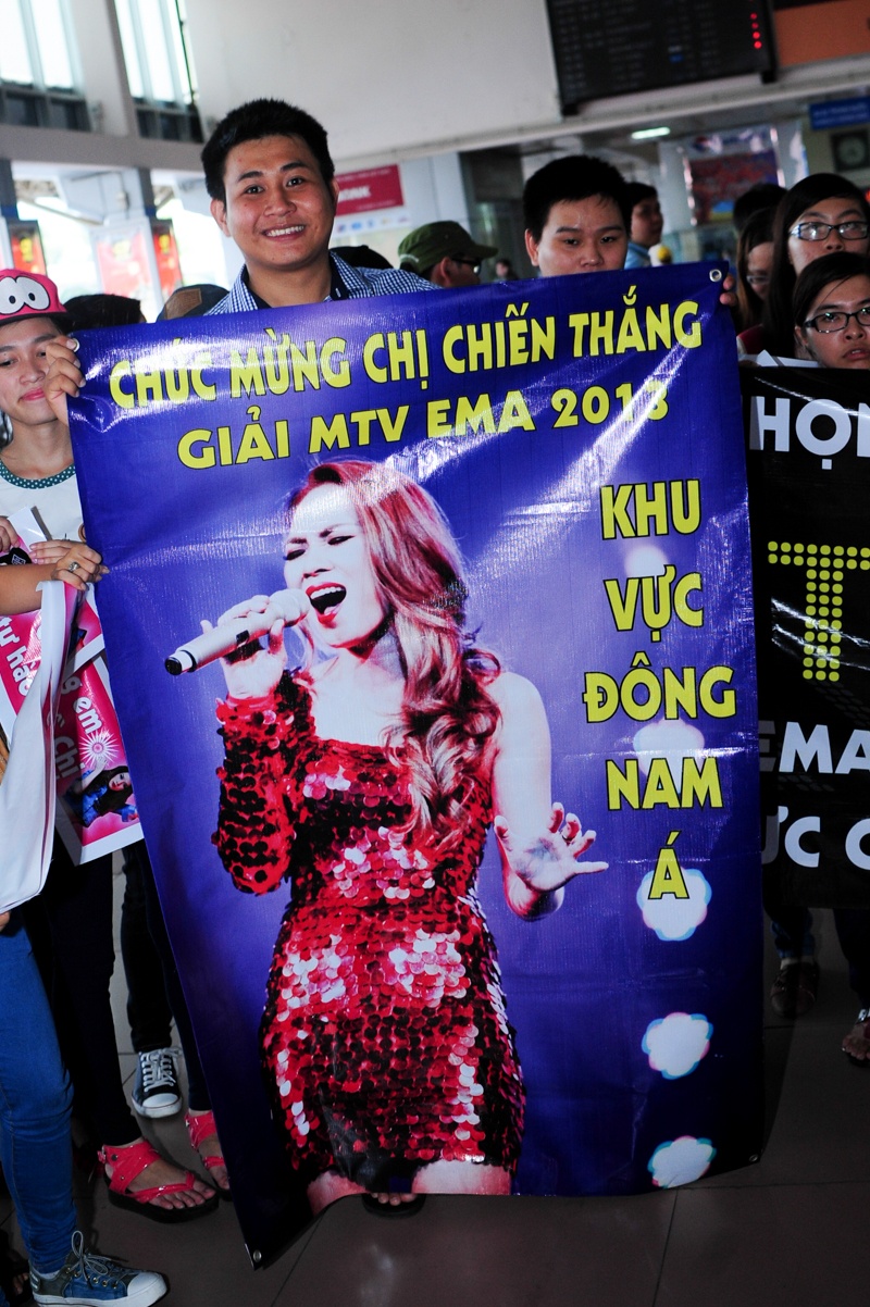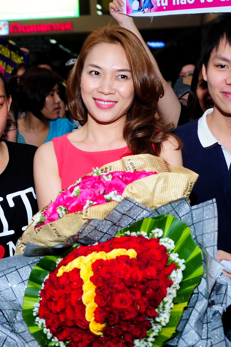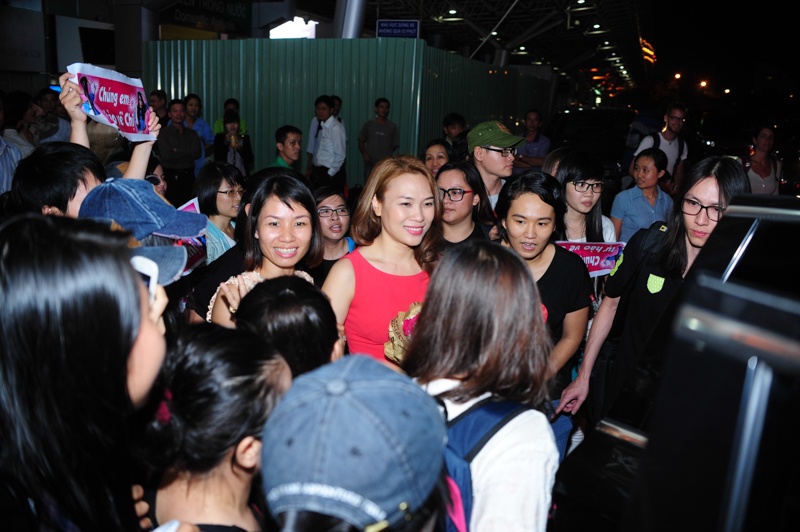 | Nhận được nhiều lời khen từ giới truyền thông lẫn khán giả, do đó nữ ca sĩ rất vui vẻ và phấn khởi khi vừa đặt chân xuống sân bay Tân Sơn Nhất. |