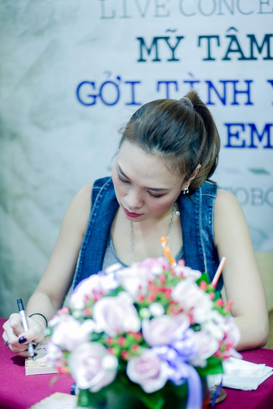| Đây không phải lần đầu tổ chức ký tặng nhưng Mỹ Tâm luôn tạo ra những bất ngờ thú vị, tạo điều kiện để gần gũi các fan hâm mộ. Đây cũng là yếu tố giúp cho Mỹ Tâm luôn là một trong rất ít ca sĩ có được lượng fan hùng hậu và tình cảm yêu mến không thay đổi qua năm tháng. |