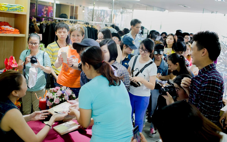 | Đông đảo fan có mặt trong buổi ký tặng hôm 27/4. |