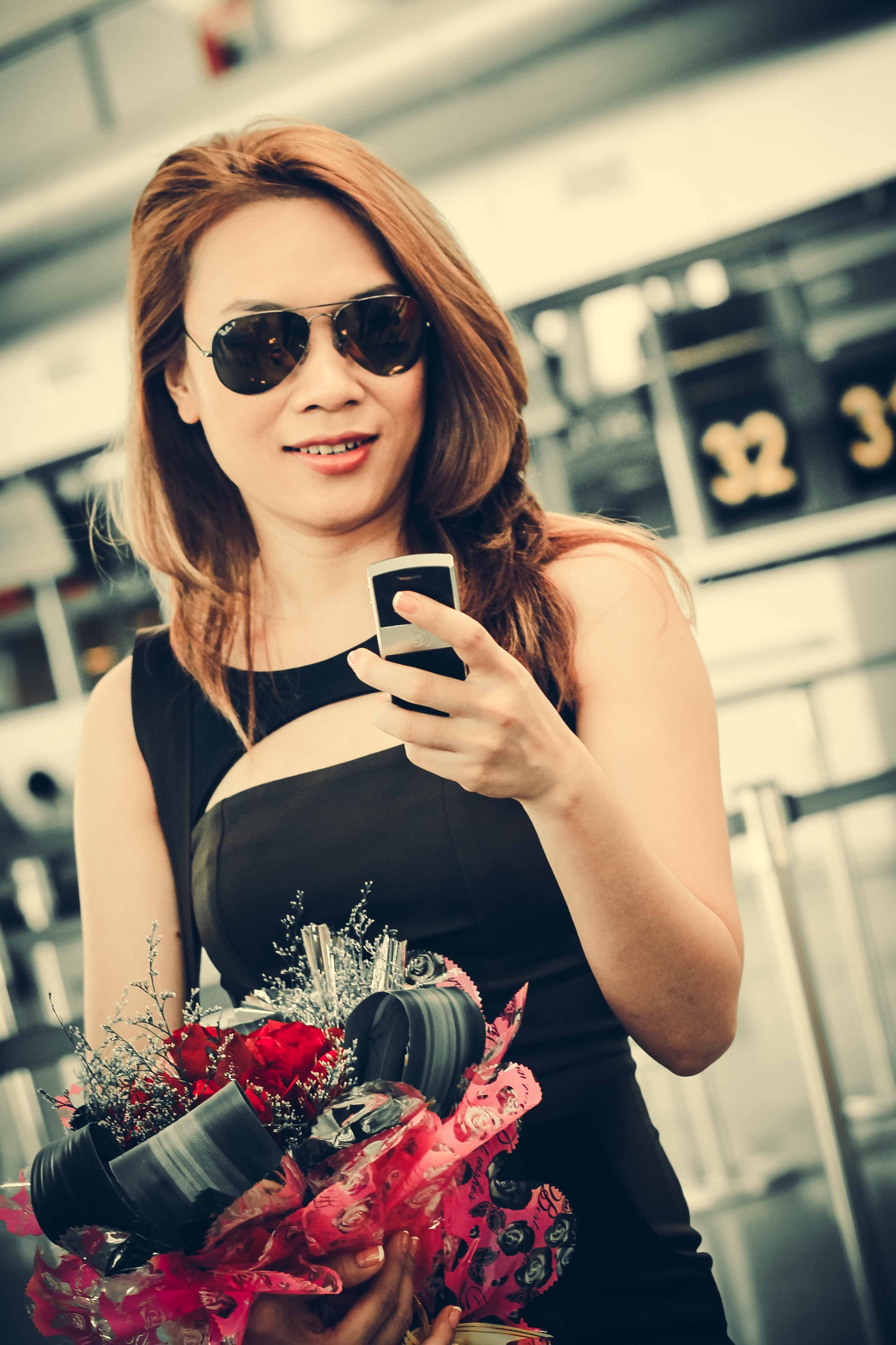 | Trong lúc chờ đến giờ bay, nữ ca sĩ của Vì em quá yêu anh tranh thủ giao lưu cùng các fan. |