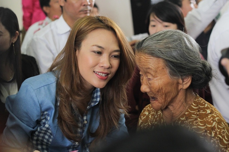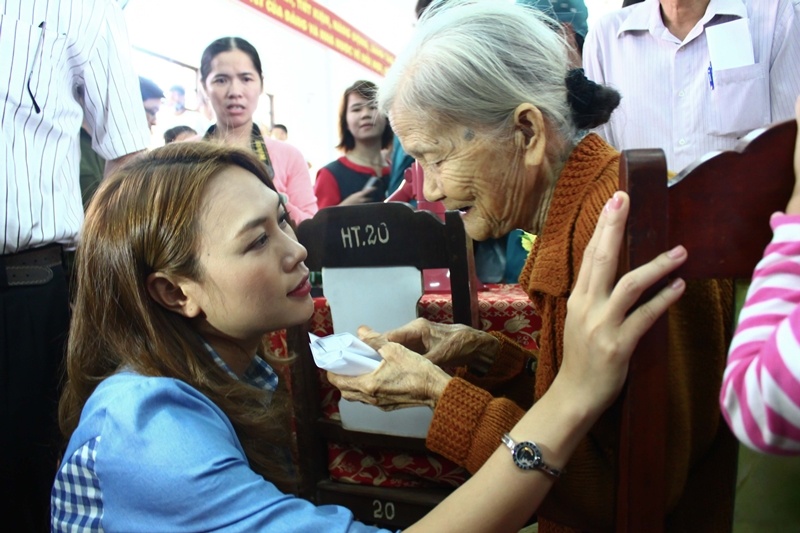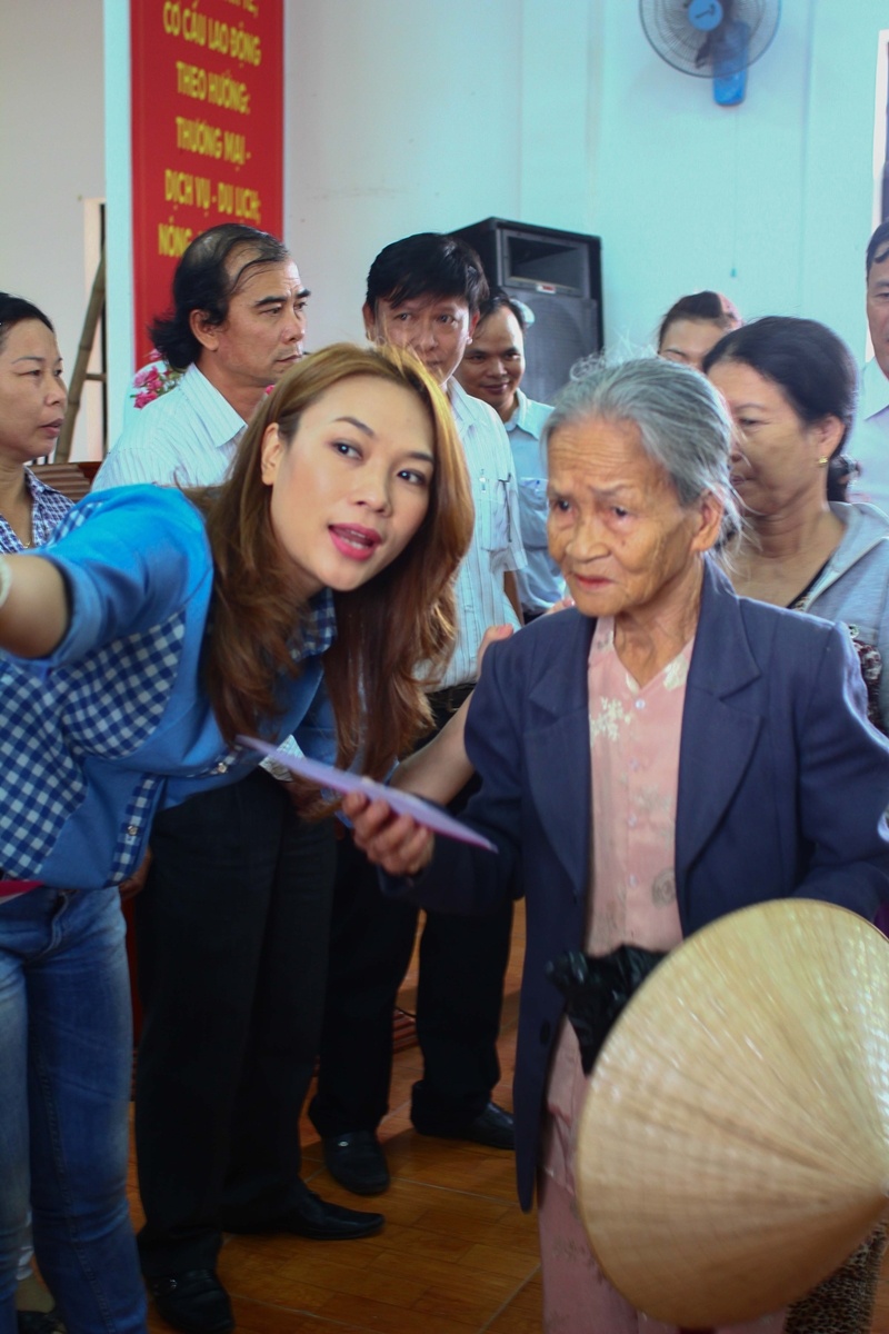 Có những cụ già và bà con dù không nằm trong danh sách nhận quà nhưng khi nghe tin có Mỹ Tâm đến thăm đã lặn lội đường xa tìm đến để được nhìn tận mắt nữ ca sĩ khiến Mỹ Tâm vô cùng xúc động.