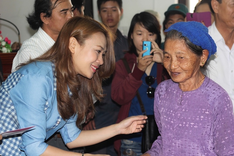 Sự nhiệt tình của nữ ca sĩ đã đem lại chút niềm vui nho nhỏ cho những người dân đang gặp khó khăn vì thiên tai tại Quảng Nam.