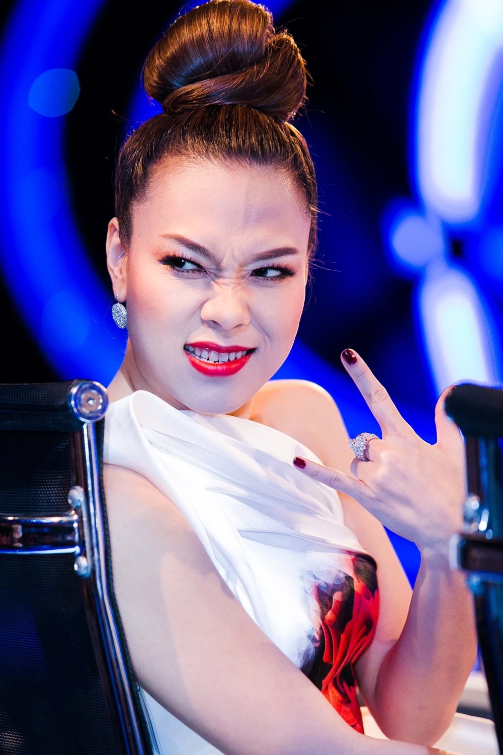 | Mọi cử chỉ nhất động của cô trên ghế nóng đều khiến các fan phát cuồng. |