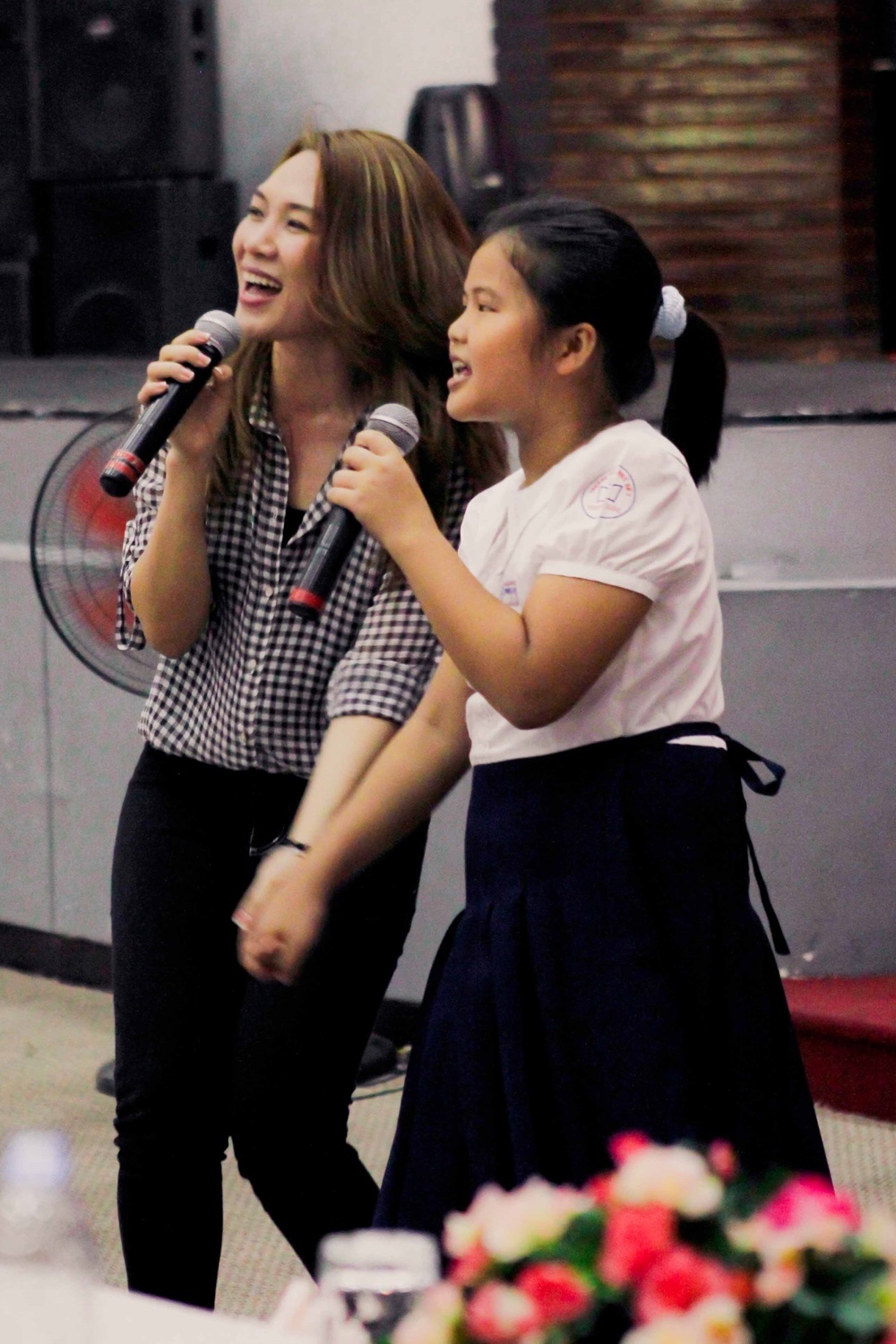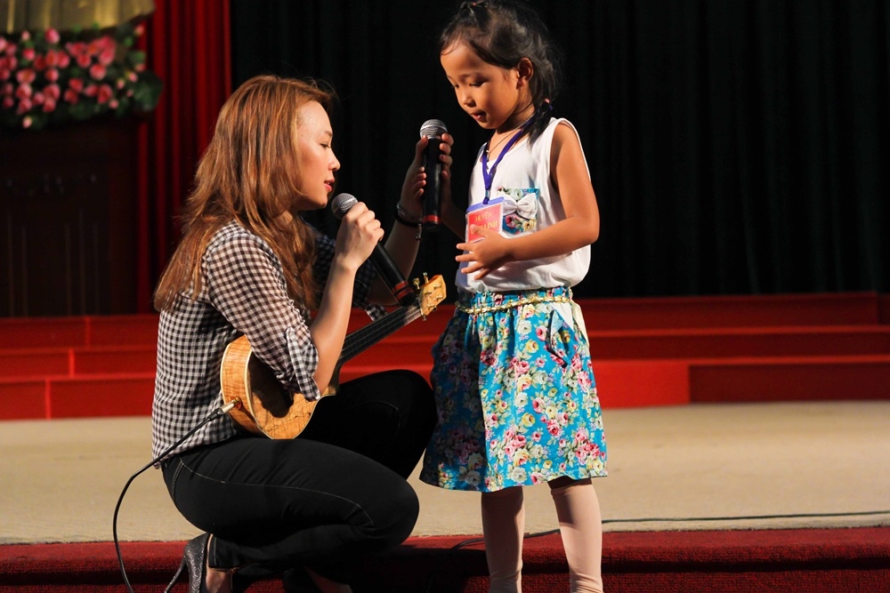Cô cũng mời các em nhỏ lên sân khấu để cùng hát với mình.