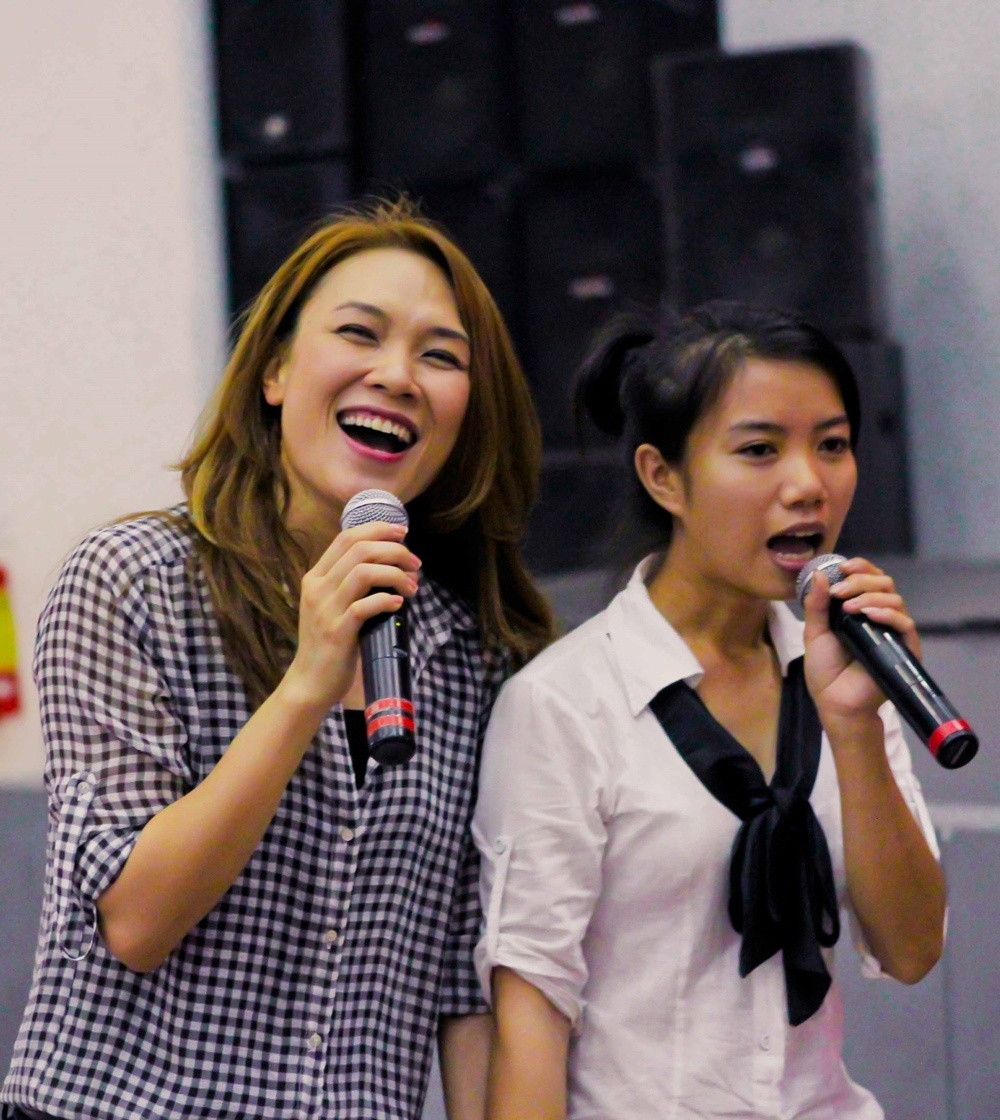 Sự nhiệt tình và giản dị của nữ ca sĩ vốn tưởng chỉ xuất hiện qua truyền hình đã khiến các em rất hào hứng và vui vẻ.