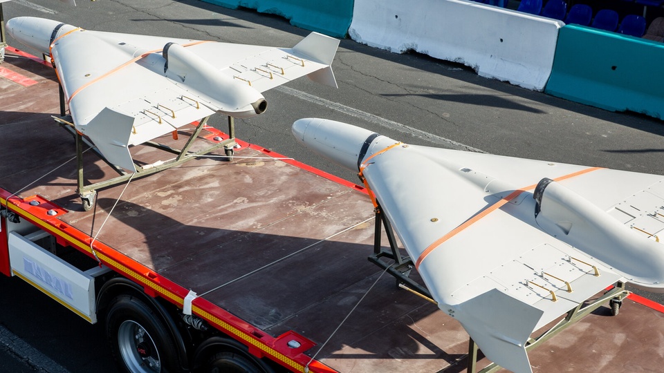 UAV Iran trong một cuộc duyệt binh năm 2024. Ảnh: New York Times. |